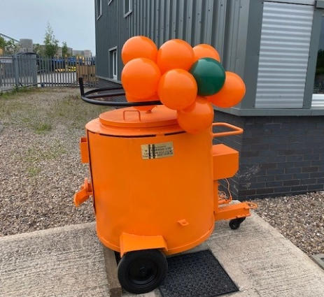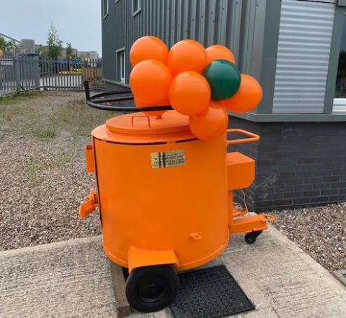 The newly ‘blasted and resprayed’ Rubber Melter, and David Hartshorn celebrating his 60th Birthday proudly posing with ‘his’ Melter.