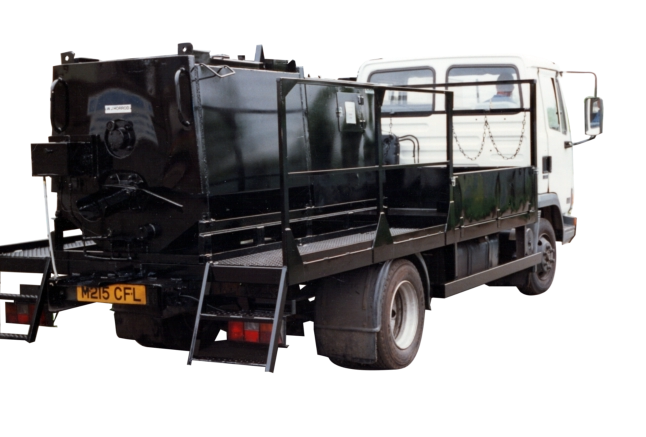 Whirlpool Mastic Mixer. The predecessor to the SwiftMelt mixer, below. Originally designed to be used with Hot Charge materials, the belt driven (fast & loose) powered with a manual gearbox. It had an advantage over a hot charge dumper, being able to deal with block materials too it could also be used for up-stand work after the flat was laid.