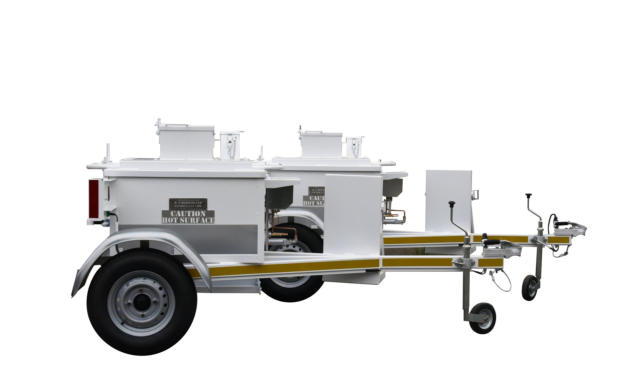 The SwiftMelt Mastic Asphalt Mixer is one of the most efficient and effective machines we’ve ever built.Now, newly added to our hire fleet the machine pictured has a couple of upgrades.Night working lights, fire extinguisher placement and a smooth running trailer.