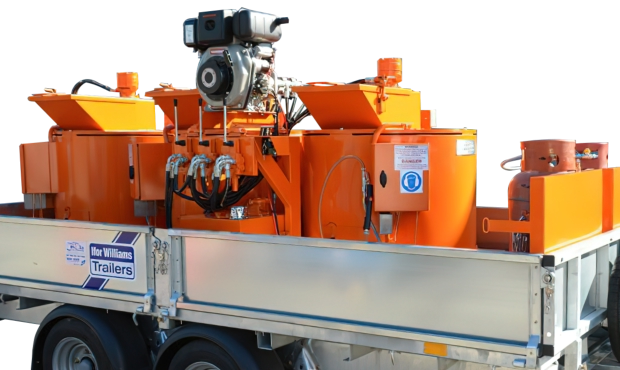 The above unit shown has 3 Preheaters mounted ona trailer for roadmarking Thermoplastics.